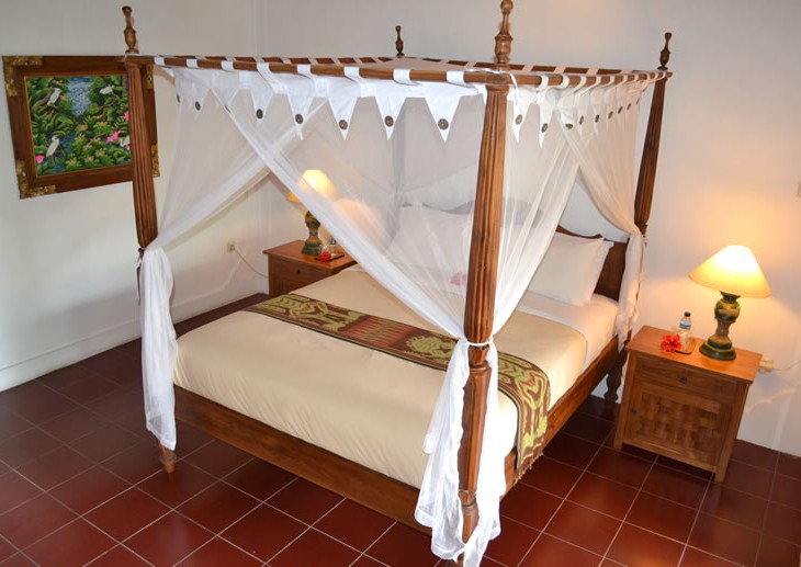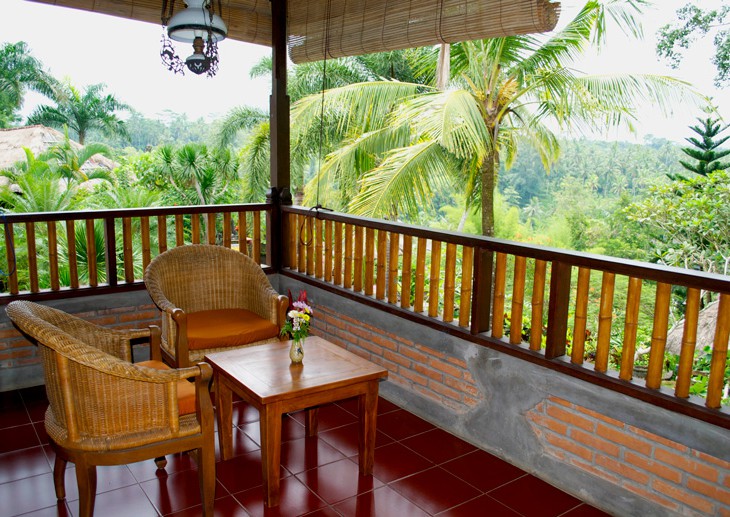 The Deluxe rooms are air-conditioned and provide extra comfort during Bali’s warmer periods. Spacious rooms with either a Queen sized double bed or two single beds and teak wooden furniture give the rooms a natural feel. Each room has a private en suite bathroom with toilet and shower area. A large terrace or balcony complete with seating area can be used to relax and enjoy the wonderful views.